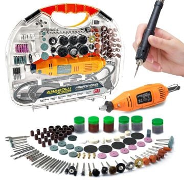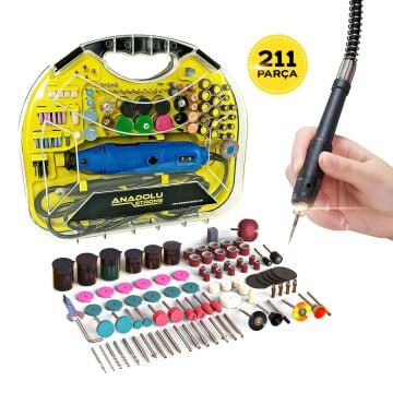Anadolu Strong 6 Kademe Devir Ayarlı Gravür Hobi Taşlama Seti Şarft Hediyeli Çantalı 211 Parça